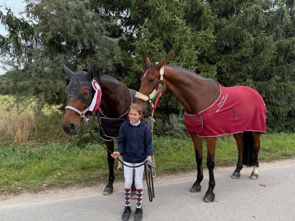 Emilie Meyer ist im Oktober nochmal richtig durchgestartet und war auf gleich vier verschiedenen Turnieren (Verden, Neuenkirchen, Braunschweig und Stadthagen) erfolgreich. Sowohl bei Springwettbewerben mit Campamenta als auch bei Dressurwettbewerben mit Conmigo war sie immer platziert. Besonders gefreut haben dürfte sie sich über einen ersten Platz in Stadthagen (Wertnote 8,0) im Spingreiter-WB 50 cm mit ihrer neuen, fünfjährigen Stute Pamina!