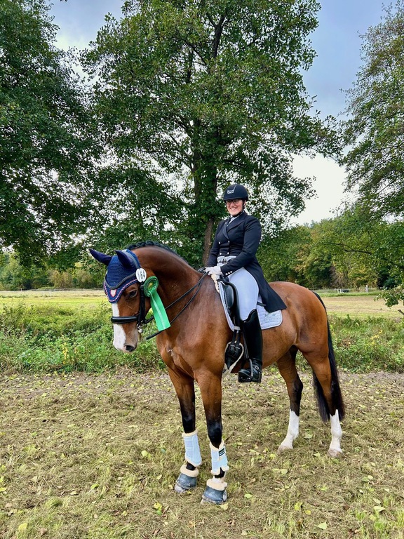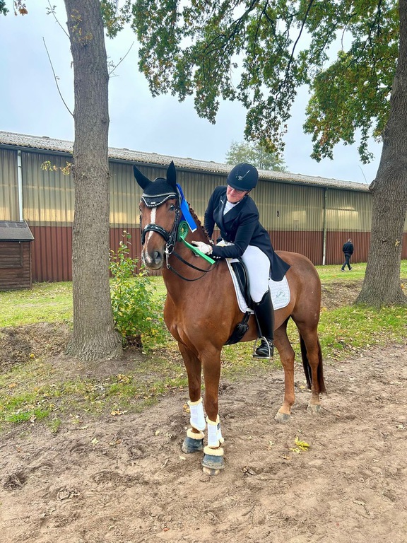Emma A. Lattrich ging mit Rafaello am 11. und am 12.10. in Handorf an den Start. Die beiden gewannen die Dressurreiter A (Wertnote von 7,8) und die Dressurprüfung A** mit einer Wertnote von 8,3!